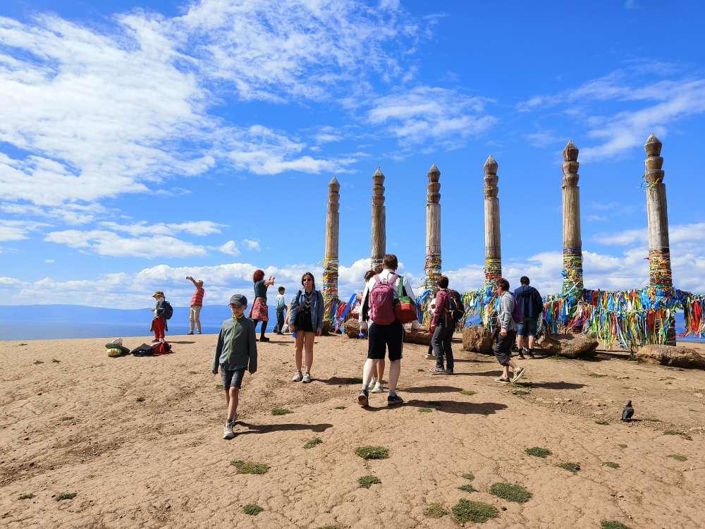 Под руководством гидов мы отправились к столице Ольхона - деревне Хужир. Живописная степная дорога вдоль байкальского побережья богата не только пейзажами, но и местами силы. Так мы познакомились с сэрге и местными способами общения с духами.